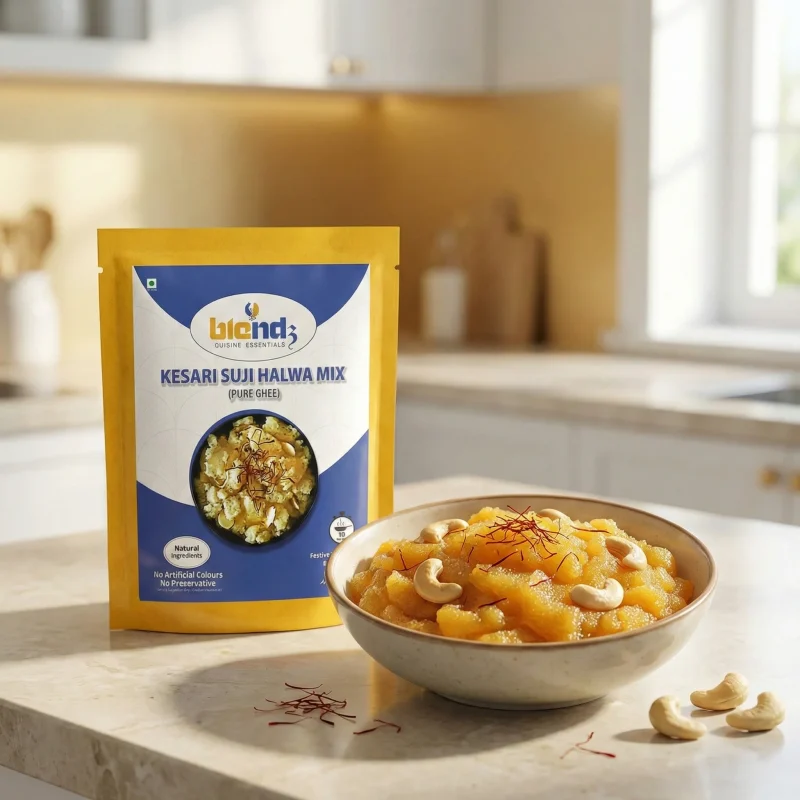 Blendz Kesari Suji Halwa Mix (Pure Ghee) – Instant Dessert Mix | Ready in 10 Minutes – 200g